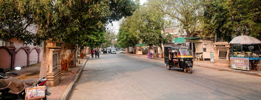 Il y a les gars du coin. Ils sont là à zoner sur des chaises au corner entre un stand de biscuits et une agence de voyage en car. Je me pose une demi-heure avec eux, on échange quelques banalités, voire par moment, on ne parle pas. Ils chiquent sans arrêt du gutka et cherchent non sans répit à m’y faire goûter. Je refuse inlassablement en leur montrant l’état de leurs dents. Sans rancune, l’un d’entre eux me dépose en moto à mon prochain point de déambulation. J’en profite pour souligner que je préfère me déplacer à pied, au grand dam des chauffeurs de tuk-tuks qui ne semblent pas habitués à des promeneurs prêts à marcher quinze ou vingt minutes.