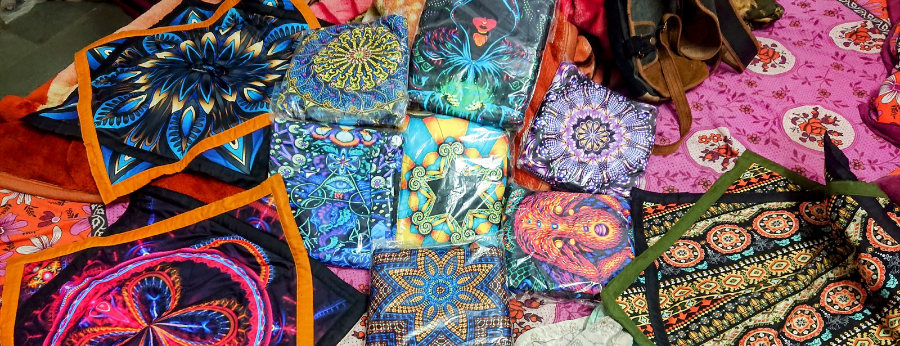 Quelques passions tristes venaient m’extraire par moments de ce confort envoûtant. Le shopping d’abord, pour lequel j’éprouvais attirance et rejet. La principale artère commerçante de la ville était une rue étroite et tortueuse le long de laquelle se succédaient sans interruption mille boutiques offrant à voir là des bijoux, pierres, colliers et bracelets en macramé, ici des vêtements, écharpes et autres tentures se multipliant jusqu’à l’infini dans une myriade de couleurs me faisant perdre la raison. Je reconnaissais là toutes les belles parures que l’on trouve habituellement en festival l’été, mais à des prix dérisoires (bien que la négociation demeure ardue).